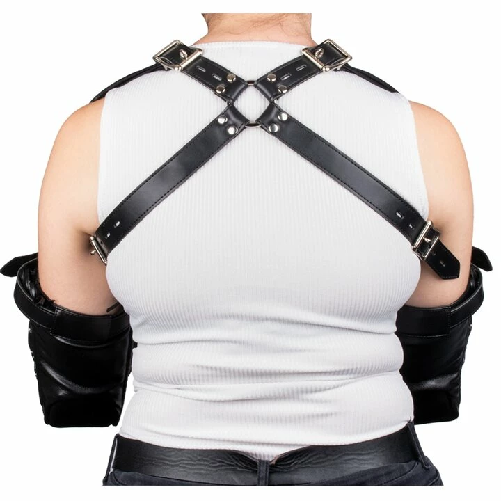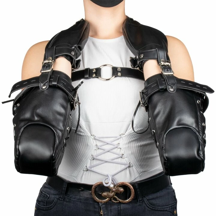As with all great BDSM wear – you will need the help of your Master or Mistress to don. The adjustable shoulder harness sits around the neck, fastened beneath the arms and around the chest. Place elbows within each padded restraint and fasten for the perfect fit. Then secure each hand within the connected mitts for hands-free immobilisation.