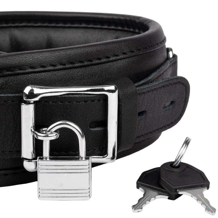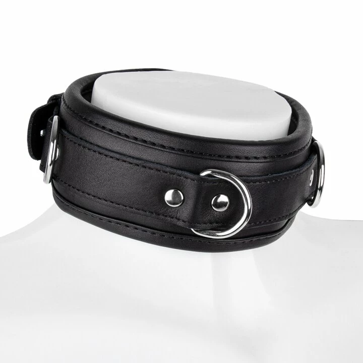 The triple D-ring design is the perfect basis for creative, versatile restraint in whichever way Master or Mistress commands. Simply fit the adjustable double-fastened strap by buckle and padlock, then connect a leash, harness, or cuffs to lead your submissive by the throat โ just donโt lose the key!