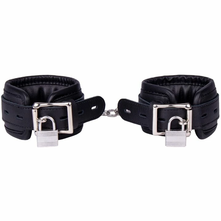 Chained to the bedposts or the chair, keep those naughty hands at bay in these strong and sturdy cuffs. And for full-body control, collect the luxury set with the Bondara Luxe Erotica Black Leather Lockable Ankle Cuffs, Bondara Luxe Erotica Black Leather Lockable Collar, and Bondara Luxe Erotica Black Leather Vented Ball Gag.