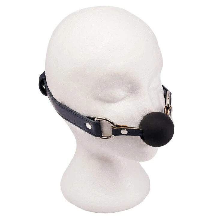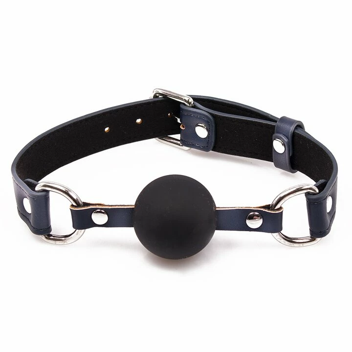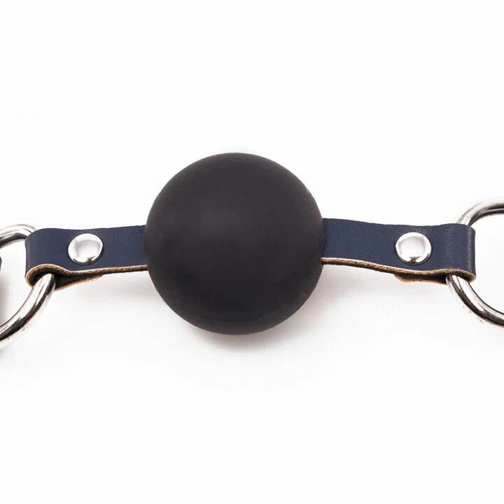 This stylish navy blue ball gag imbues a regal aesthetic with lustrous chrome finishes.