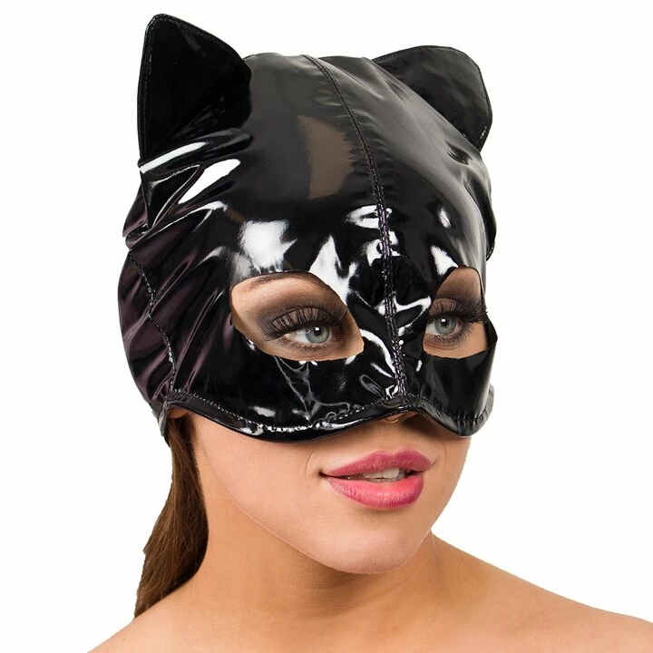 โข Ooze cat-like charisma in the Sex Kitten Wet Look Cat Mask by Bondara Siren. This high-shine black demi-hood adds animal magnetism to your fetish outfit in hypoallergenic synthetic latex. With cat-eye ellipses that comfortably frame your eyes, large cat ears cast a sexy silhouette as you saunter into the night.ย