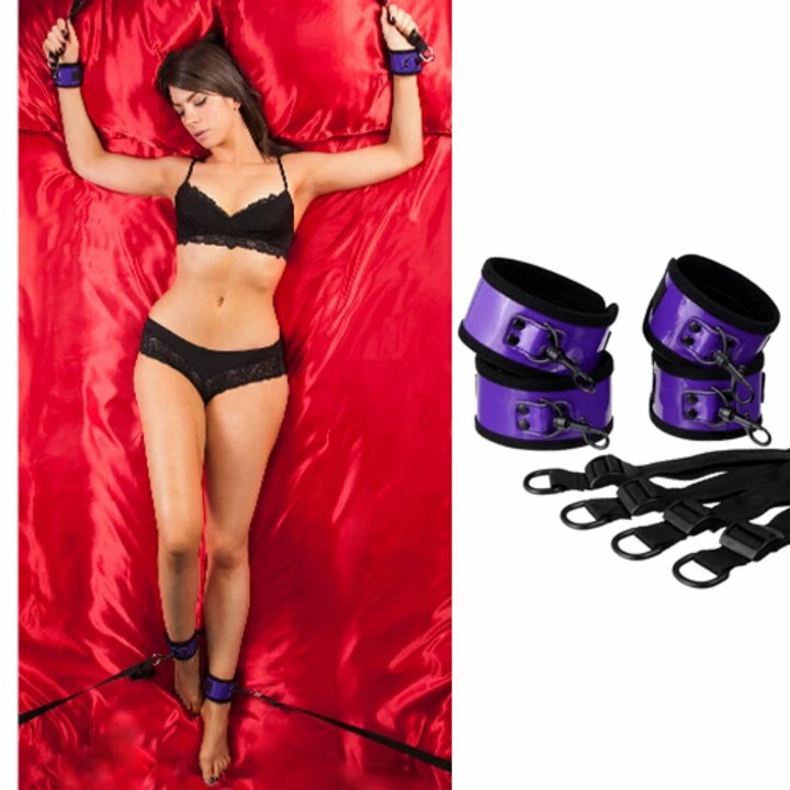 Bondara Purple Pin Me to the Bed Restraint: Turn your bedroom into a bondage lair with the addition of this bed restraint. Place the X-shaped straps underneath your mattress in advance and the Velcro wrist and ankle cuffs will always be ready at a momentโs notice.ย