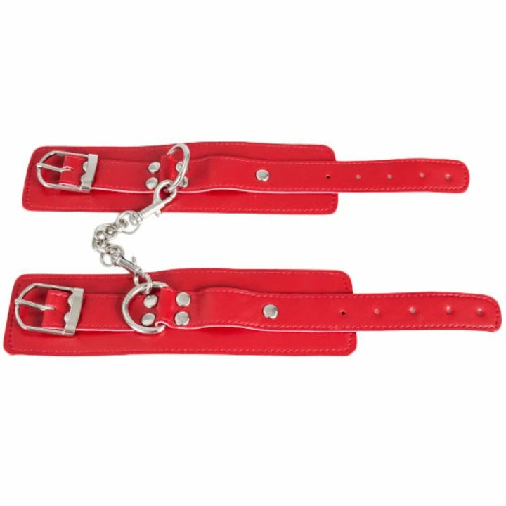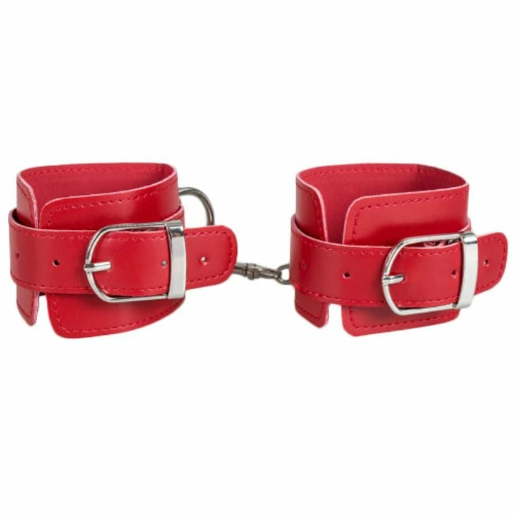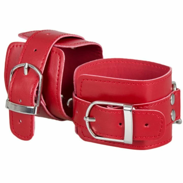 โขย ย Discover bondage play with these red, faux leather wrist cuffs