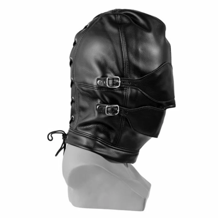 Have complete control over what your submissive sees and says with this PU Bondage Hood with Detachable Mask Chain Strap and Ball Gag. Fantastic for BDSM, this hood features detachable mouth and eye covers as well as a plastic ball gag for total domination. Comfortable to wear this hood is made from a soft PU and laces up at the back for easy adjustment.