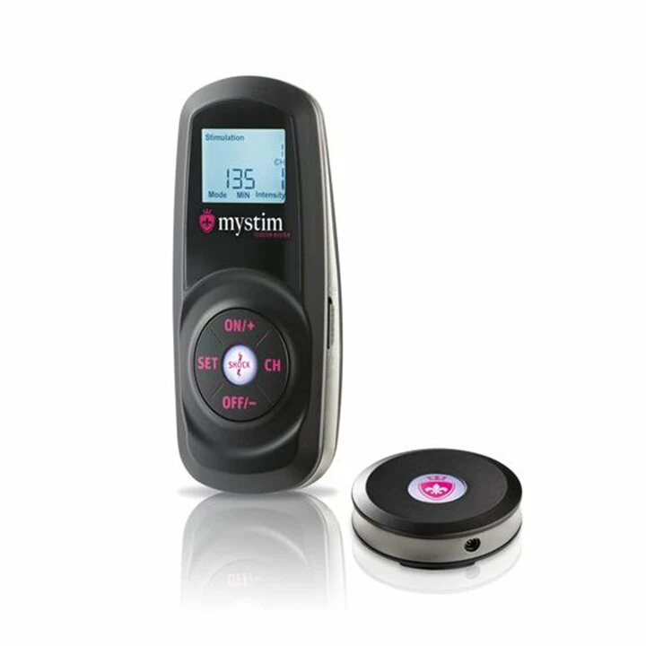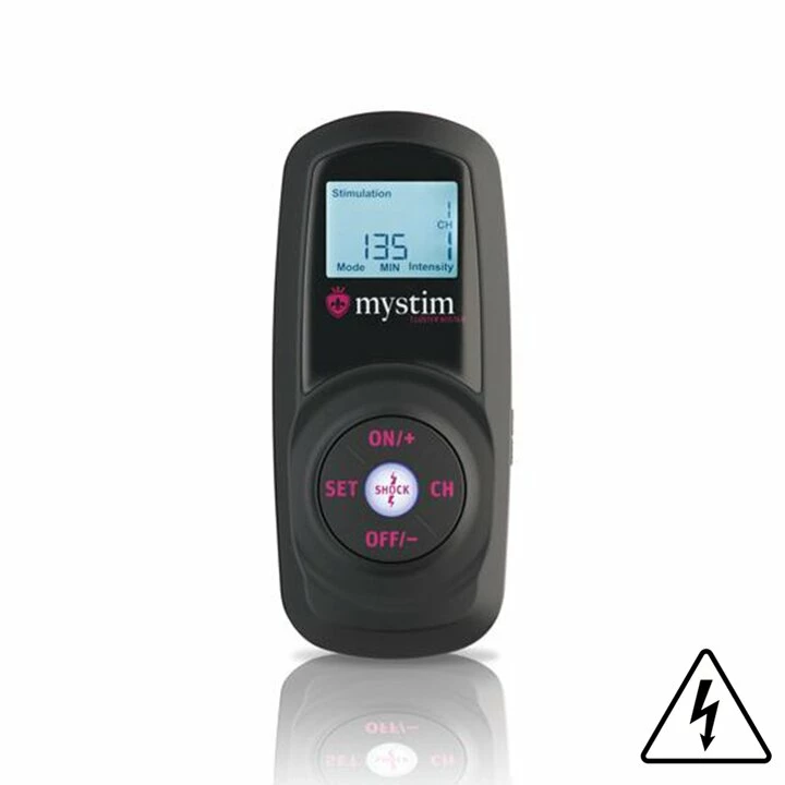 This unique e-stim unit includes a remote control and receiver that can wirelessly control all your Mystim toys at once! From tingling sensations to pulsating pleasure; experiment with twelve stimulation settings and five training programs via the intuitive digital control for varied stimulation from mild to wild – you can also train the pelvic floor!