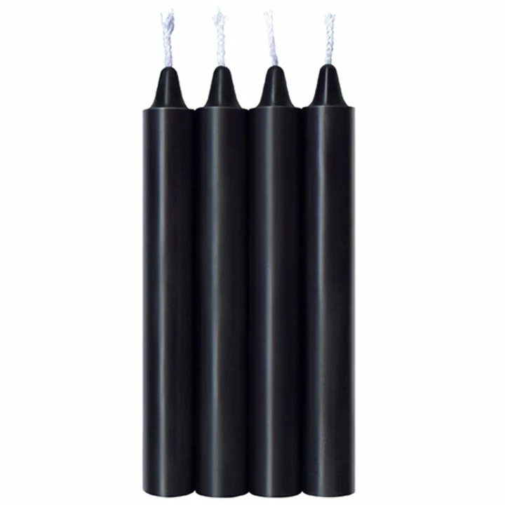 Specifically created for sensual wax-play, these Ouch! Make Me Melt Black Bondage Candles are the perfect way for turning up the heat on your BDSM session. Designed to drip across your partnerβs body, this four pack of paraffin wax candles quickly warm to the touch.Β