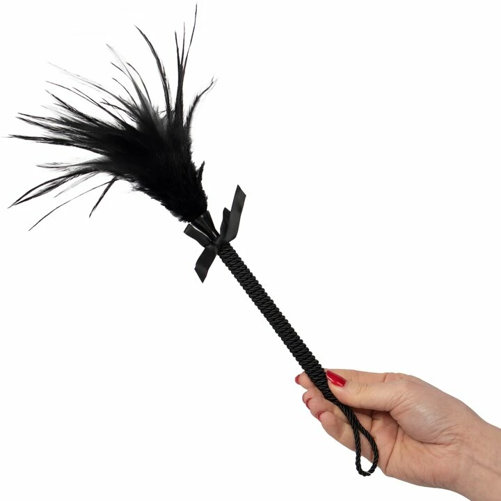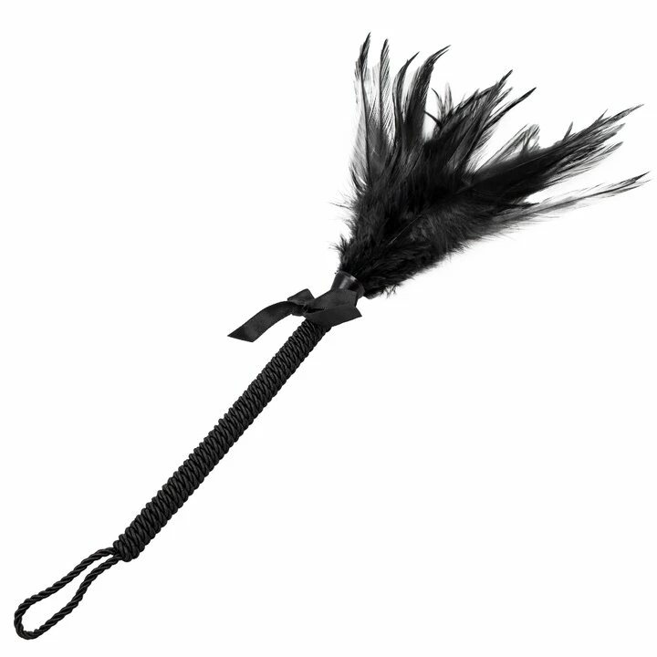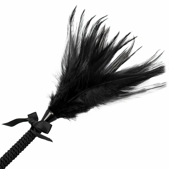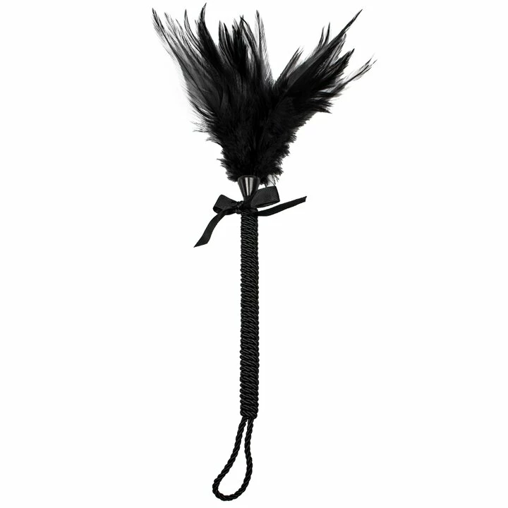 Tease your playmate as you run the plume of feathers across their shoulders, down their stomach and up their inner thighs. With a chic all-black design, braided handle and finished with a delicate bow, we wonโt blame you if youโre tempted to leave this tickler on display. Fortunately, the little loop at the base is perfect for hanging it up with pride!