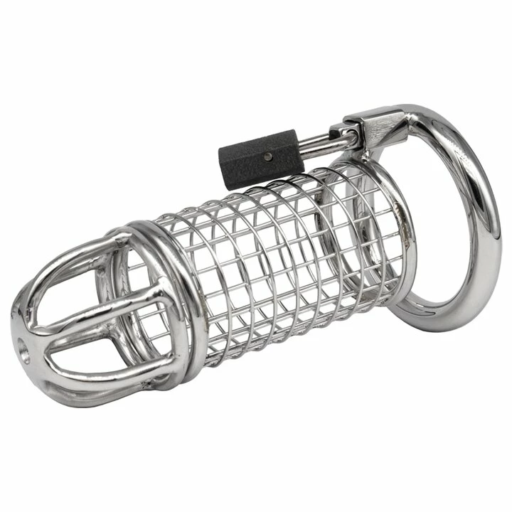 Put his tackle on โtime outโ with this revealing ‘matrix’ design that encloses his shaft in a gridwork of sturdy stainless steel, housing up to 3.9-inches of flaccid cock, with no hope of arousal. Meanwhile, the hole at the tip is the perfect exit for fluids, as this open design permits maximum ventilation for safe and hygienic chastity. Securing to the base with a sturdy padlock, the 1.8-inch diameter ring encloses his ballsack for a tightly crammed appearance that only adds to his humiliation.