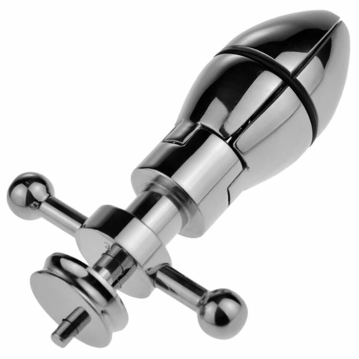 Anal stimulation unlike anything you’ve experienced before; The Ultimate Asslock is perfect for BDSM play as the wearer’s is literally โlocked’ as the Asslock is expanded to stretch and fill the anus. Made from solid (and very heavy) stainless steel, the Asslock has a simple plunger mechanism in the base that causes the butt plug to splay and stretch the wearer. Once the Asslock is fully opened you can then lock it in place using the included padlock to prevent removal without the use of the key. When you’re finished playing the Asslock is easily removed by unlocking the padlock and slowly and carefully easing the plunger back so the lock closes- allowing you to gently remove like a normal butt plug. High quality, simple operation and unique design; this is the ultimate extreme anal toy. The padlock includes 2 keys and the Asslock is presented in an elegant gift box.